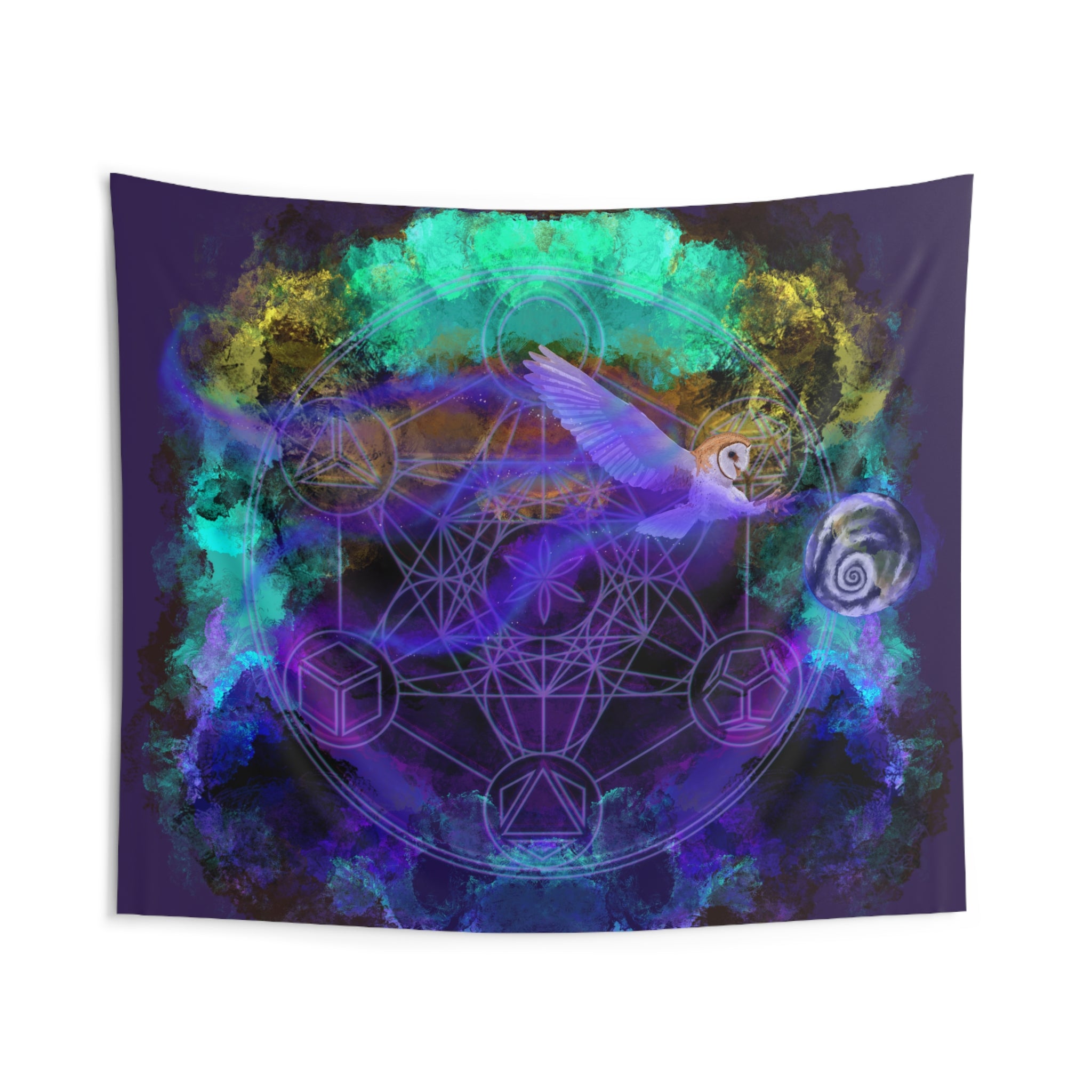 The design came to me in a meditation as symbolism for the spiritual awakening happening on earth. As the owl is coming in to bring wisdom to the earth in the form of spirituality. The metatron cube holds a special significance as the fruits of life. This conscious awakening feels like it will bring fruits to life in many forms.